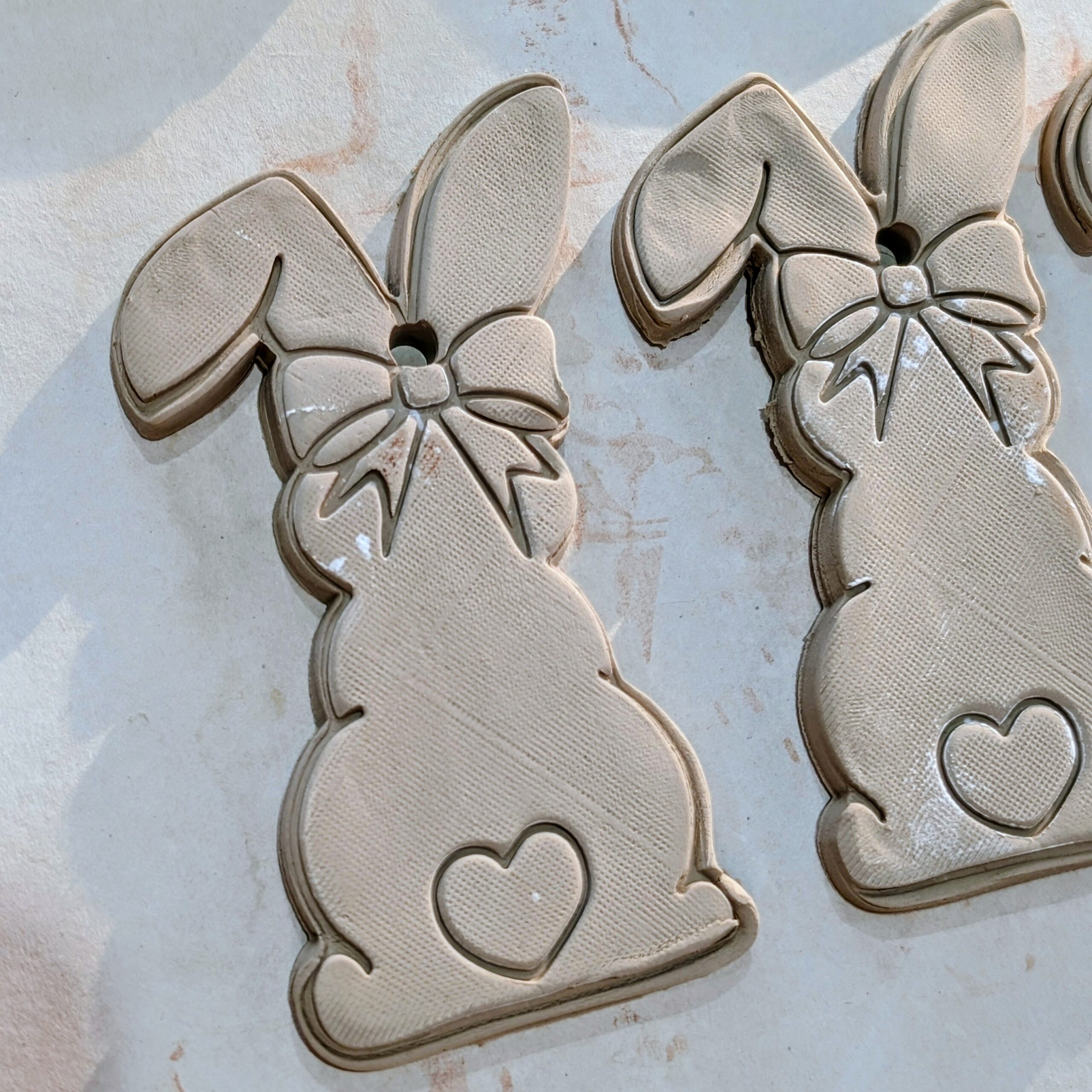 Make your own gorgeous creations with our Bunny and bow stamp and cutter set. This set can be used to make hanging decorations, accessories, trinket dishes, or add fabulous detail to other projects. Perfect for creating pieces to sell in your PYOP studio or at craft markets