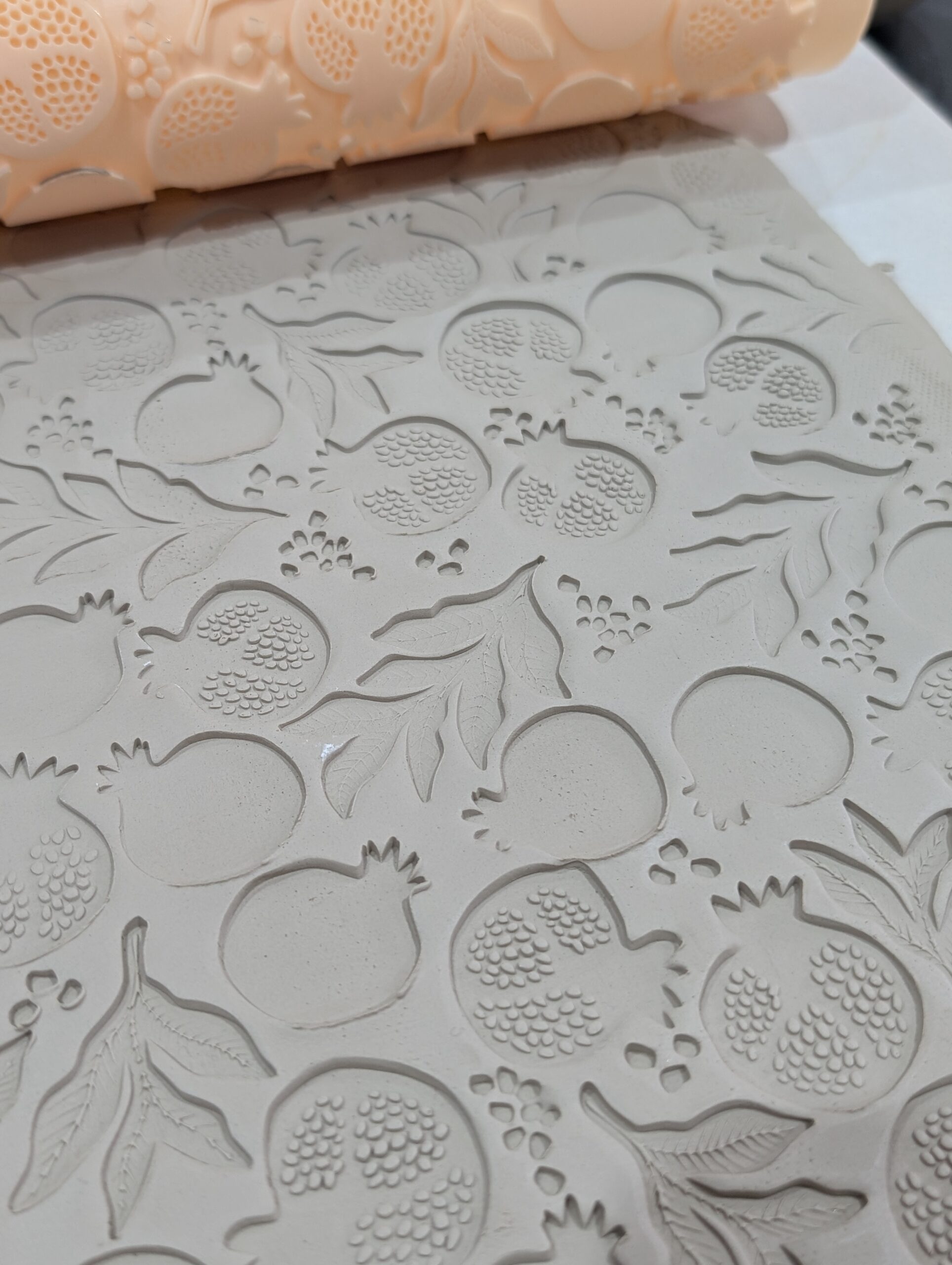 This listing is for a textured rolling pin that is printed with resin using a 3D printer. The photos alongside the main photo will show you bisque fired earthenware clay pieces made with the rolling pin and also some painted pieces for inspiration. You will also find extra inspiration in our gallery.