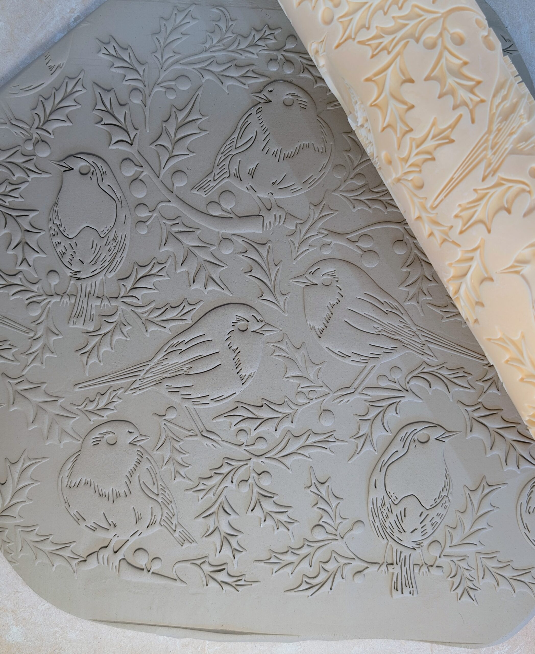 This listing is for a textured rolling pin that is printed with resin using a 3D printer. The photos alongside the main photo will show you bisque fired earthenware clay pieces made with the rolling pin and also some painted pieces for inspiration. You will also find extra inspiration in our gallery.