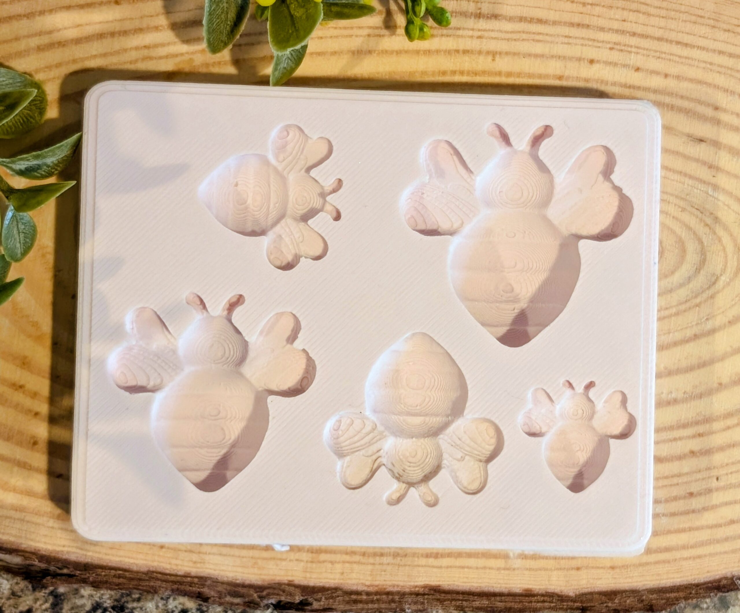 This listing is for a silicone mould to make bees, this mould makes 5 different sizes of bees – 4cm, 3.5cm, 3cm, 2.5cm and 2cm.