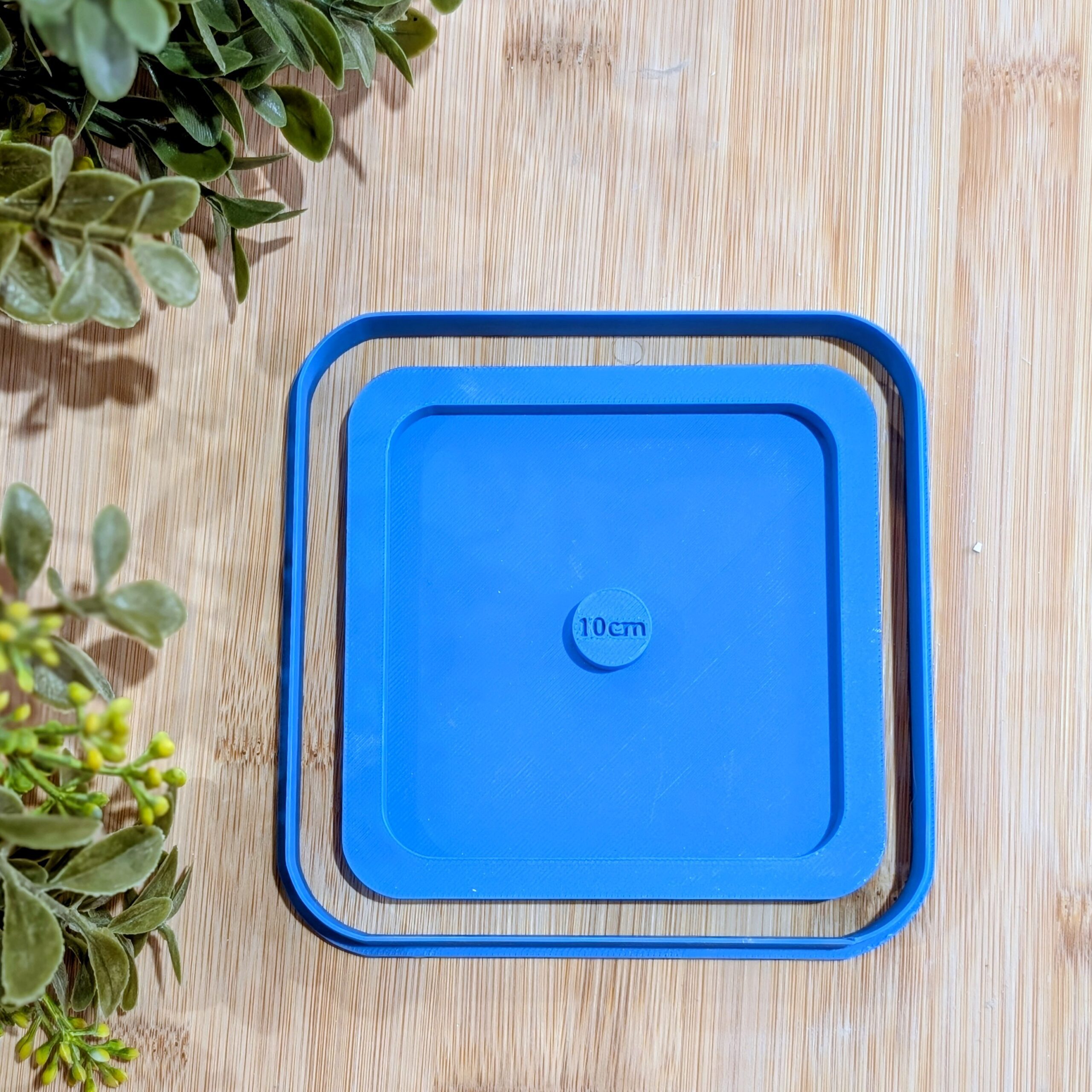 This square trinket dish former and cutter set comes with a dish former and a corresponding cutter. This item is available in a range of sizes from 10cm/4inches to 20cm/7.9inches.